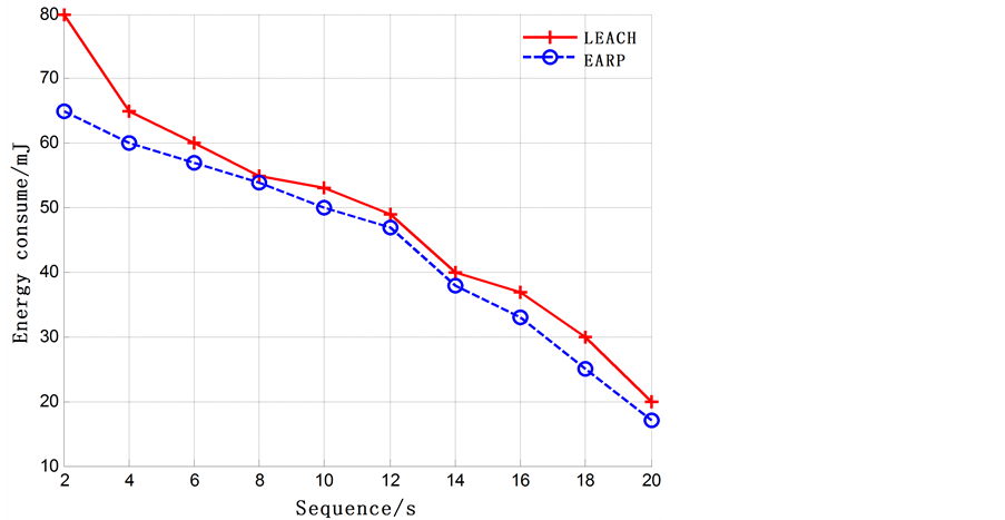 Generally along with increased production cycle of time sequence, the energy consumption of all routing protocols for CRNs has been declining. It can be clearly seen from Figure 7, comparing with the LEACH protocol, the EARP has relatively small energy consumption, this is mainly because the EARP has reduced