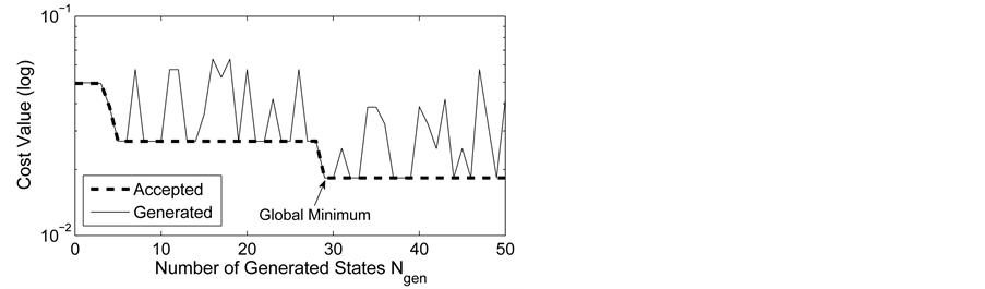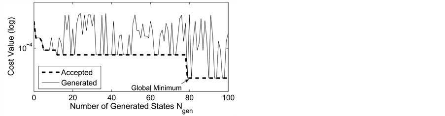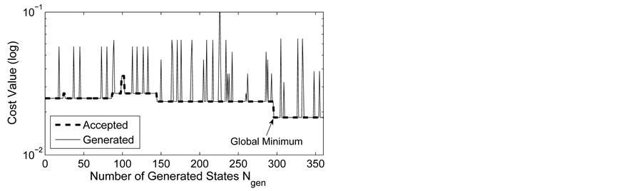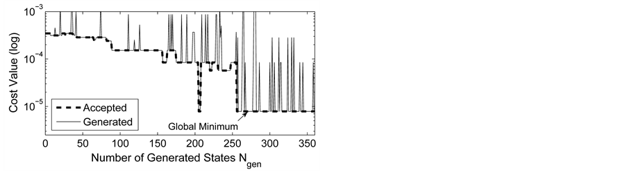 The ASA algorithm consists of three major stages: generating, acceptance, and annealing [38] . In a N-dimensional parameter space with the ith parameter having the range