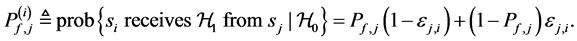 We assume that each sensing node gathers hard decisions from other partner nodes including its own decision, and uses the k-out-of-n fusion rule to produce a final decision ( [22] , pp. 59-61). We define the partner set of a sensor