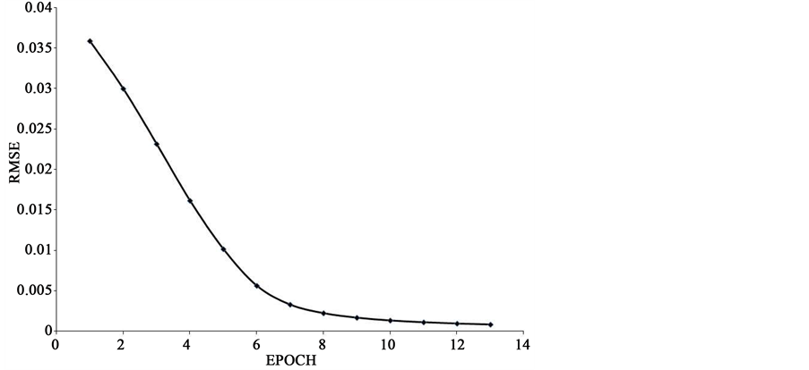 The proposed method is applied on OCR Handwritten digit data [20] having 667 patterns per class. 6670 patterns each with 193 bits are used for training and 3330 with 192 patterns are used for testing. The last bit of the pattern represent target class of the pattern. The experiment is carried out using MathLab software in the Intel Quad core system. Every pattern is converted into 16 number of patterns with single digit as target value. After compression by logical OR operation, 16 patterns reduce to 8 patterns. Clusters are formed among patterns of each partition of a digit separately. When threshold for distance measure is considered as 2, total number of clusters formed is 2216. As the compressed matrix obtained after logical OR operation is with 8 rows, 8 neural networks are considered for training. Each network is with 13 input neurons including bias, 6 hidden neurons and 10 output neurons. Classifier layer of the ensemble network is with 10 neurons as the number of arabic digits is 10. Number of hidden neurons is selected by trial and error method. The termination condition for training is fixed as 0.001 mean squared error. Number of epochs needed for every network termination is shown in Table 1. The tabulated values are the average value of 25 different runs of the experiments. The time required for convergence of each network is shown in Table 2. The network weights are initialized from the range [−1 1] randomly. The learning curve of the network for partition 3 is shown in Figure 3. Among 3330 patterns 98.6% of the patterns are recognized correctly. Table 3 shows the number of patterns classified correctly for each digit. Table 4 compares the accuracy of the proposed work with that of Ravindra Babu et al. [7] , Agrawal Monu et al., [4] and Vijaya et al., [19] .
