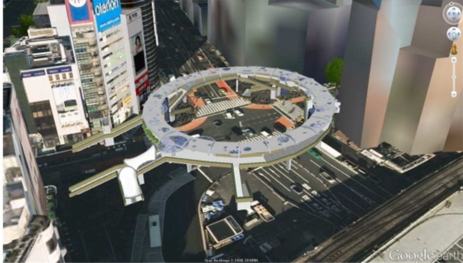 We used Google SketchUp to export the VR dataset into the KMZ format compatible with Google Earth. Google Earth, is already widely popular as free virtual globe software with users in the world. It is very convenient for users of Google Earth to share urban plans and designs with other users around the world, taking