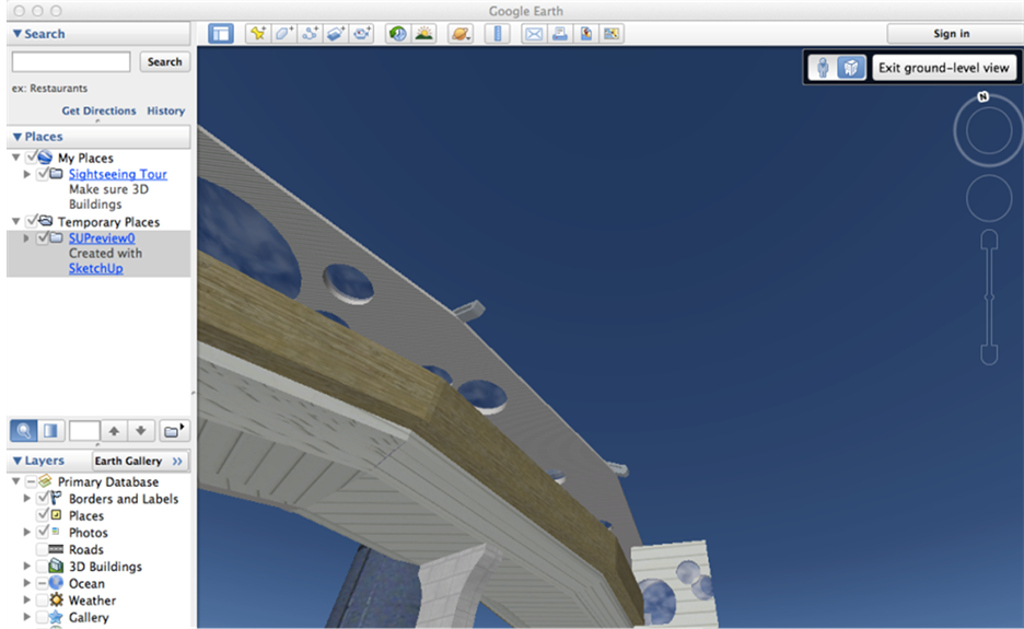 Figure 1. Bridge design edited in SketchUP and exported to 3DS or KMZ format for VR-Cloud, Google Earth and 3DVIA use.