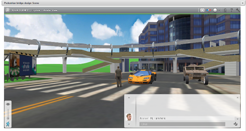 Figure 8. Multiuser environment of pedestrian bridge design using 3DVIA.