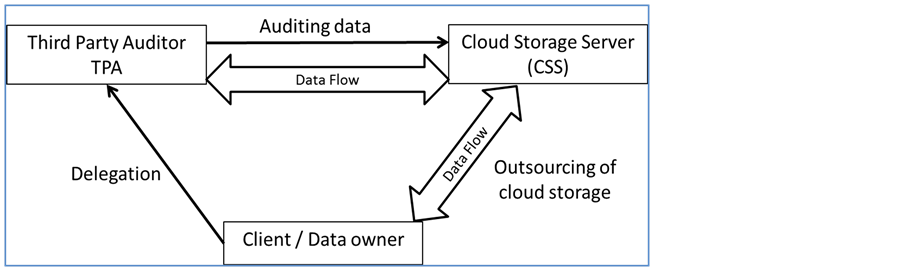 Figure 1 [1] [19] shows public auditing scheme, in which, cloud users (clients) use the cloud storage provided by the CSP to outsource storage of their data, a TPA entity trusted by the client is entitled to keep checking on user’s data periodically to verify data integrity. In the case of any unexpected results, both the client and the CSP are notified, a flow of security messages are exchanged between the three entities. In Figure 2 [11] [20] the public auditing scheme is extended to support public verification and dynamic data auditing, it also supports batch auditing in order to improve efficiency. To overcome data privacy issues, random mask technology is used to avoid TPA getting the client's data information knowledge on every verification process.