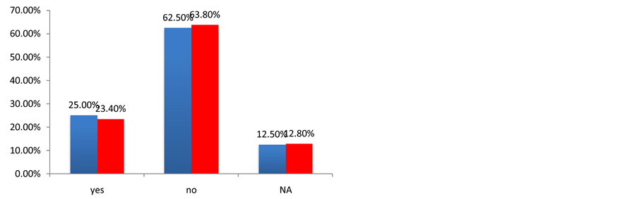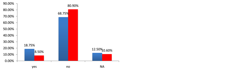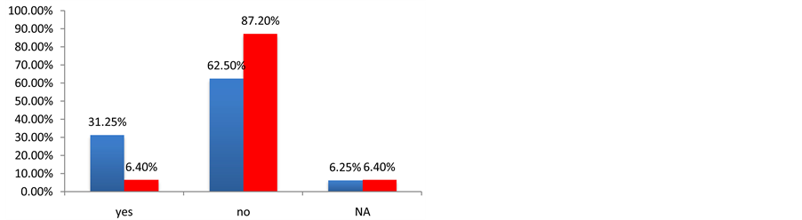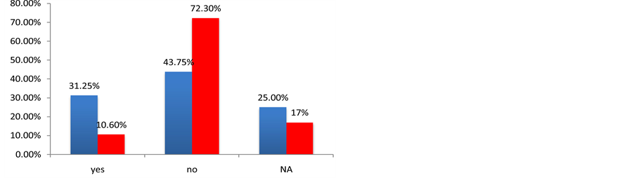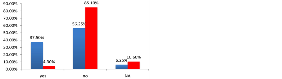 Before measuring the field levels at the hospitals, this project aimed to determine the awareness of medical personnel regarding the problem of interference in the performance of the medical equipment and to see if there is any precedent in the study of electromagnetic compatibility in these hospitals and if any security measures are taken to avoid the problem of electromagnetic interference. With these objectives, a survey was performed in 55 hospitals in Argentina and Spain. Figures 1-9 show the most important results of this survey. The result of the survey for the Spanish hospitals is shown in blue, and the result of the survey for the Argentinian hospitals is shown in red.
