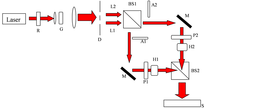 The schematic of the experimental setup is shown in Figure 1. A linear polarized helium-neon laser is incident over a radially polarization converter to produce the radially polarized beam. Then, the beam is expanded by an expanding system which containing a rotating ground glass in the focus to reduce the coherence of the light. The newly generated radially polarized partially coherent beam passes through a Young’s double slit and a Mach- Zehnder interferometer consisting of apertures, quarter-wave plates and polarizers. The interference fringes can be obtained in the observation plane as shown in Figure 2.