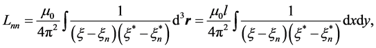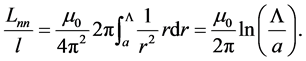 The self-inductance, Equation (28), can be directly integrated. We note that