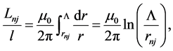 is the distance from wire n to wire j. These are standard results [1] [2] . Measurements and calculations of the self-inductance of actual thin wires of length