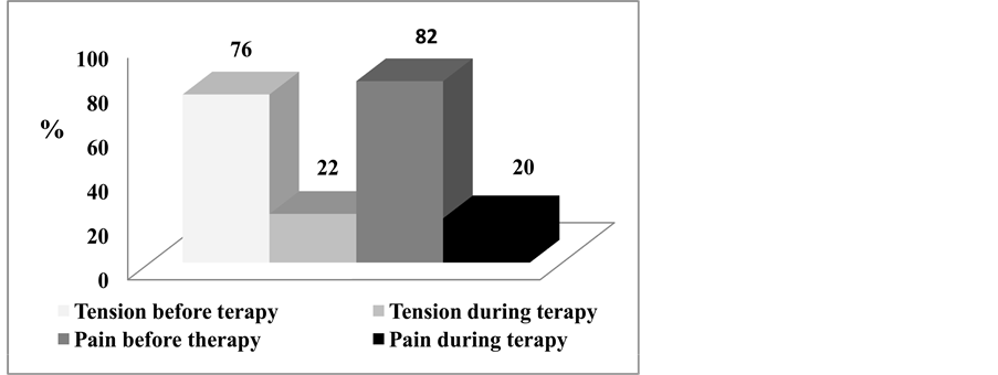Figure 4. Pain and tension (%) during luteal phase before and during the therapy.