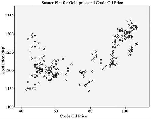Studies have revealed that there exist long-run and short run relationships among stock price index and gold price in developed and developing countries. There was no relationship with the stock market and gold rate and the gold prices do not increase because of stock market [20] , [21] . Yahyazadehfar, et al. [12] , Mishra, et al. [13] and Le & Chang [22] confirmed that there is a significant relationship with the stock market and gold rate and the increase gold rate is due to stock market. Le and Chang [22] examined the association between gold price and crude oil price based on monthly time series data from 1986 to 2011 and showed that both the variables are closely linked with each other. A study was conducted during 2nd January 1991 and 10th August 2012 using daily time series data to see the influence of Indian stock market index (Sensex and Nifty) on Indian gold price or the relationship between Indian gold price and Indian stock market index (Sensex and Nifty) and the results revealed that gold price in India was increased during the study period because of stock market reaction in India along with other macro-economic factors.