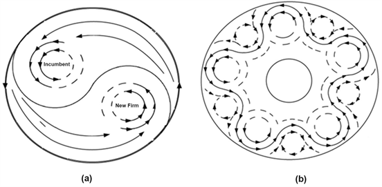 Figure 3. A new field pattern of the market. (a) Only one entrant; (b) Multiple entrants.