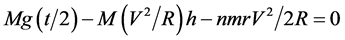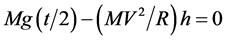 To account for the destabilizing effects of the wheel gyroscopic moments, consider the rear-view, free-body diagram in Figure 8. As in Figure 7, let h be the height of the mass center above the rail, and let t be the track width. Let M be the total mass of the car including the masses of the wheels. Then by setting moments about Q equal to zero, as the rail-car is about to tip off the rail, we obtain: