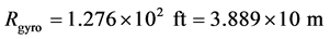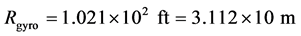 Observe in this case the critical curve radius is reduced due to the reduced rail-car tip over propensity. Observe also that the contribution of the gyroscopic moments to the curve length