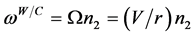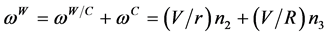 In Figure 6 the unit vectors provide the directions consistent with those of Figure 5. Note that in Figure 6, however, the unit vectors are not fixed relative to the wheel but instead they are fixed relative to the rail-car C. Consequently the angular velocity of the wheel relative to the car, written as: