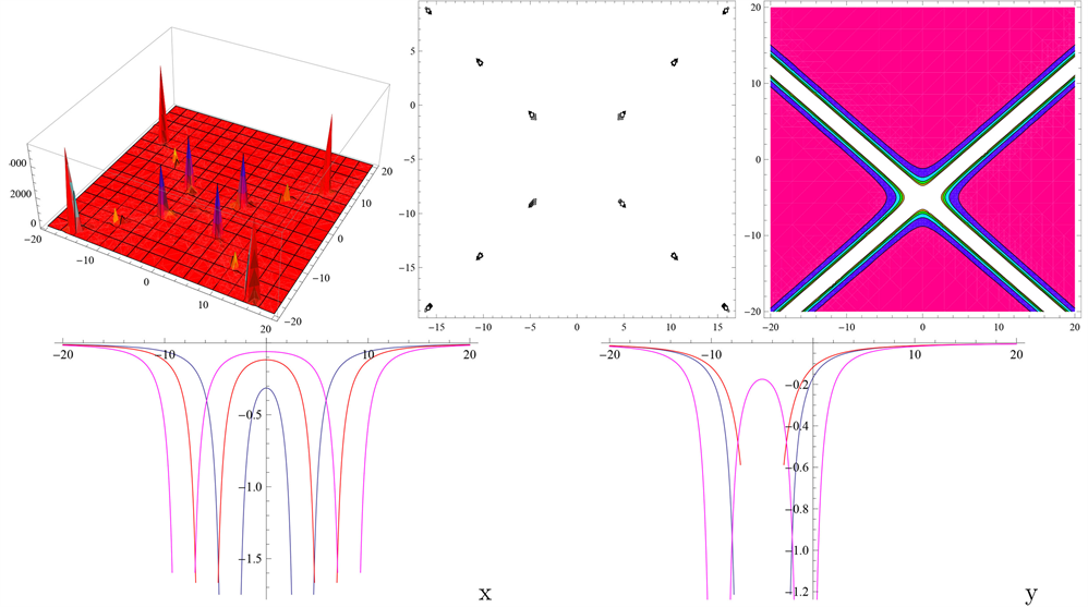 Figure 4 and Figure 5 show the profile of and its contour plot with the parameters (26).