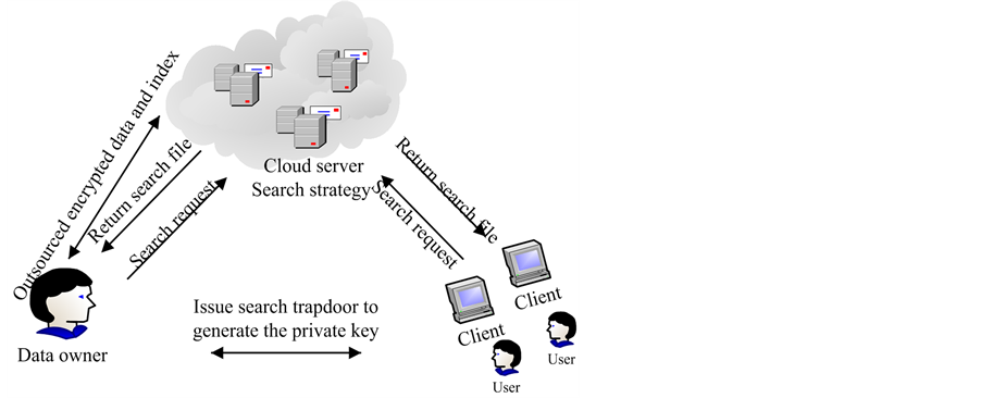 System framework of fuzzy search strategy based on the keywords of the encrypted cloud data is shown in Figure 1. The framework consists of three main entities, which are data owners, users and cloud service providers. Among them, data owners are individuals or enterprise users, who store the collection of data files