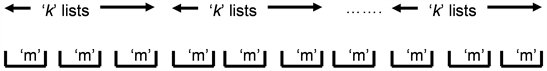 Step 3: To merge k lists into 1 list, we need to pick the “0-th”, “k2-th”, “2k2-th”, “3k2-th”, … real numbers in each list Li to form a new list of m/k2 elements. This is shown as Figure 3.