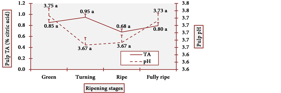 The pH was measured using the calibrated pH meter. The determination of the TA was performed by titration with 0.1 M NaOH using phenolphthalein as the indicator [17] . The results were expressed as the percentage of citric acid [17] .