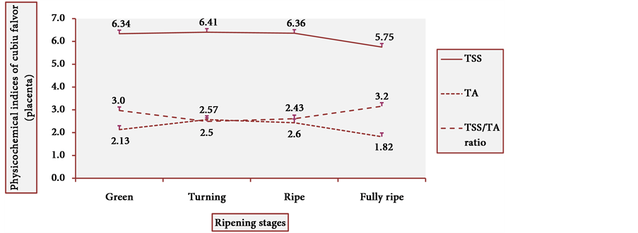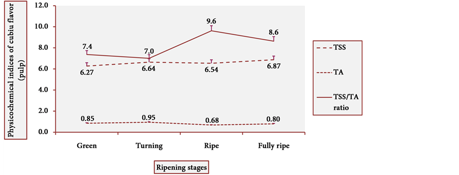 TSS were measured in drops of undiluted juice from freshly harvested cubiu fruits, using a digital Reichert refractometer (AR200, New York, USA). The TSS/TA ratio was also calculated.