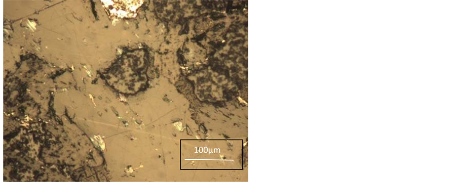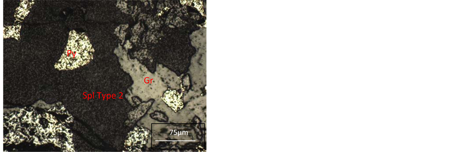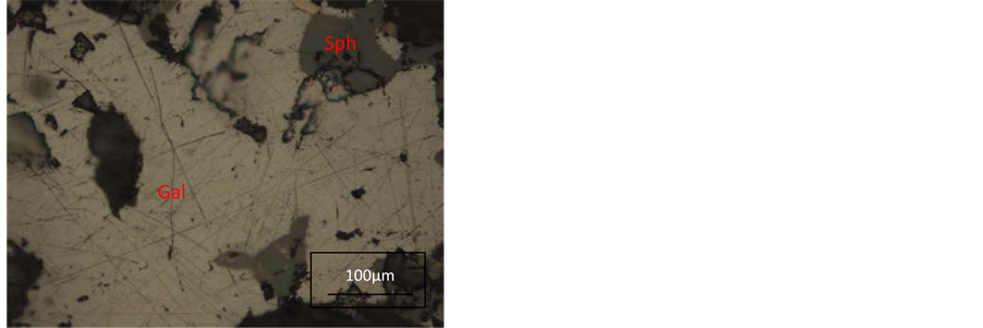 Ore microscopy is the traditional name for the study of opaque minerals using a polarizing ‘incident light’ microscopy [27] . Mineral identification is an important aspect of the study of the opaque ores. In the study area most opaque minerals are pyrite, galena, phyrrhotite, chalcopyrite and sphalerite (transparent to translucent). Pyrite shows high reflectance and brittleness, galena shows triangular pits and ductile nature. Mostly two types of sphalerite one is less disturb and second is highly disturb by tectonic activities. The main objective of this study was to identify the number of ore phases present in the sample and their mutual relationship with different gangue minerals, ore textures etc.