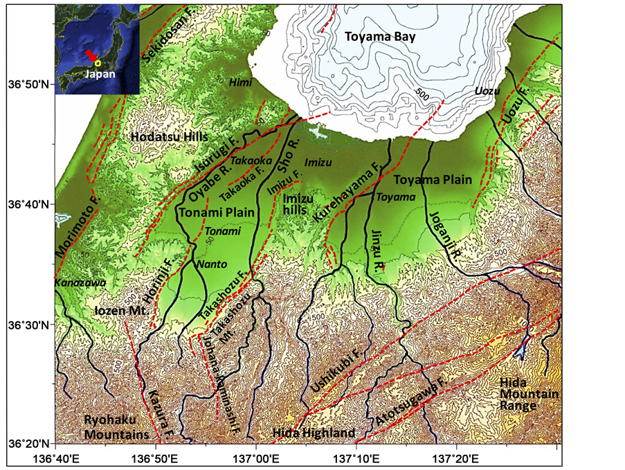 The evolution of the landforms and geology of the Tonami Plain is thought to have begun in the Quaternary after the end of the previous Neogene tectonic movements [2] [3] . For this reason, the objective of this study was to elucidate the formation of the landforms of the Tonami Plain mainly in the late Quaternary and the role played by active faults in this formation process.