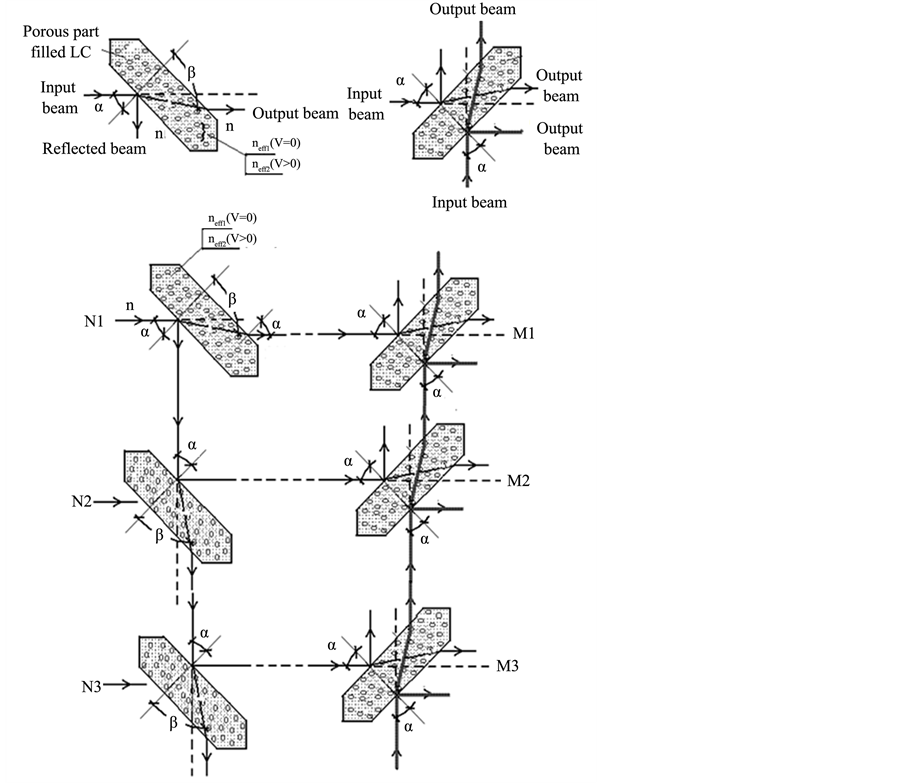 It makes possible to get electrically control boundary, which can be switched between modes “light reflects” and “light passes”. With the set of such interfaces, it is possible to build a multi-step M × N channel router similar to that shown in Figure 4.