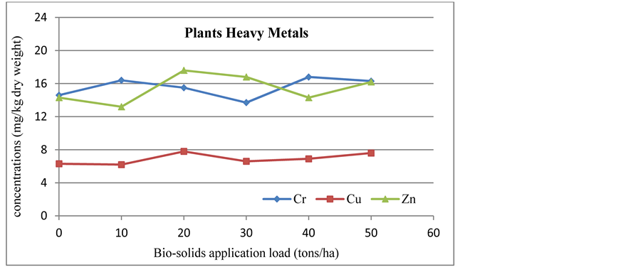 Figure 4. Heavy metals (Cr, Cu and Zn) in plant tissue.
