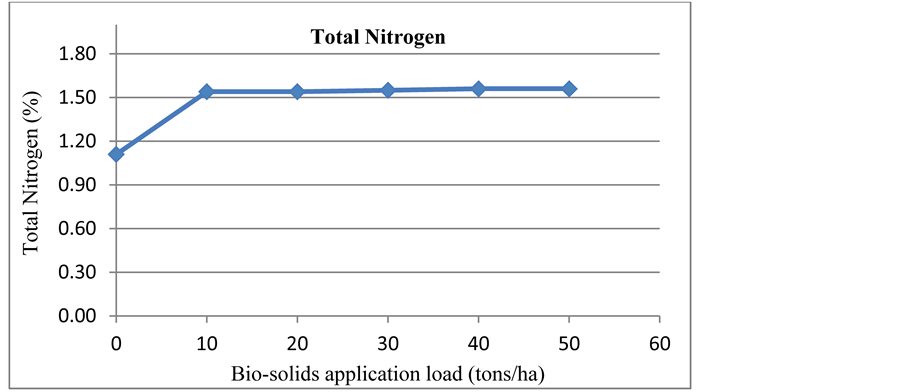 The total nitrogen percent is increased from 1.11% in the control to about 1.55% in all bio-solid applications as shown in Figure 6.