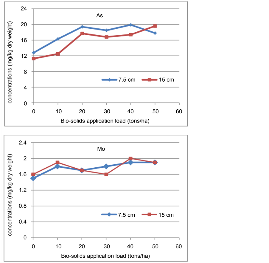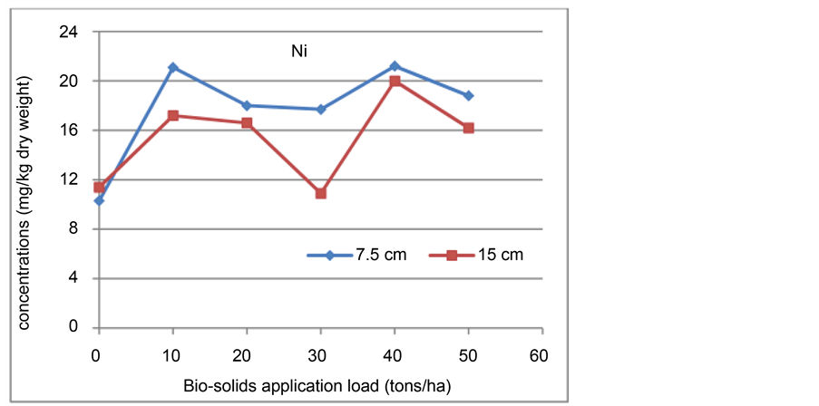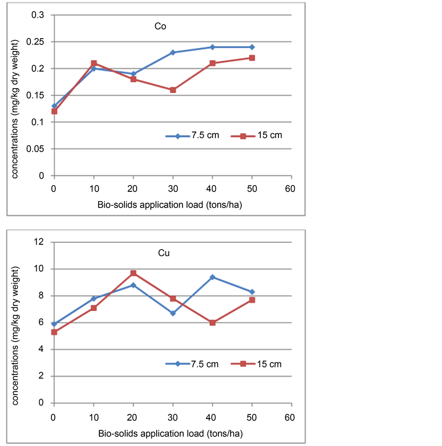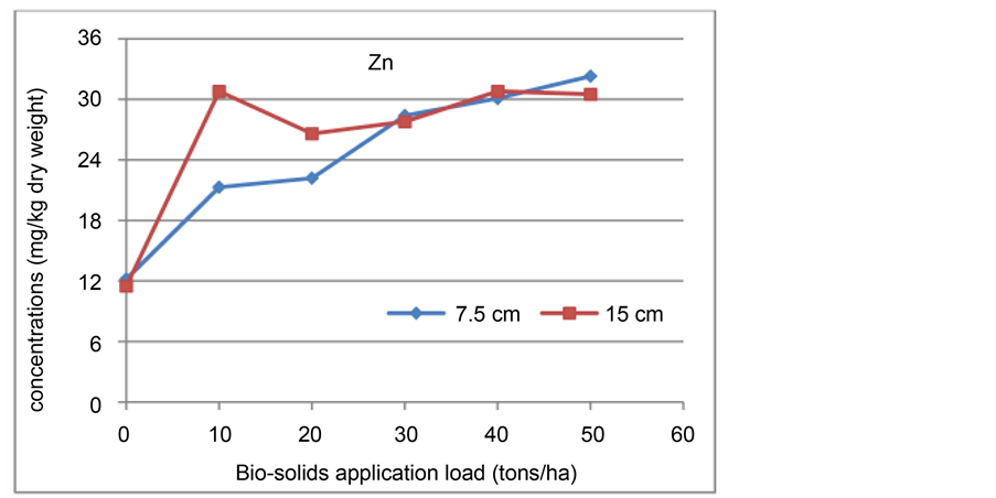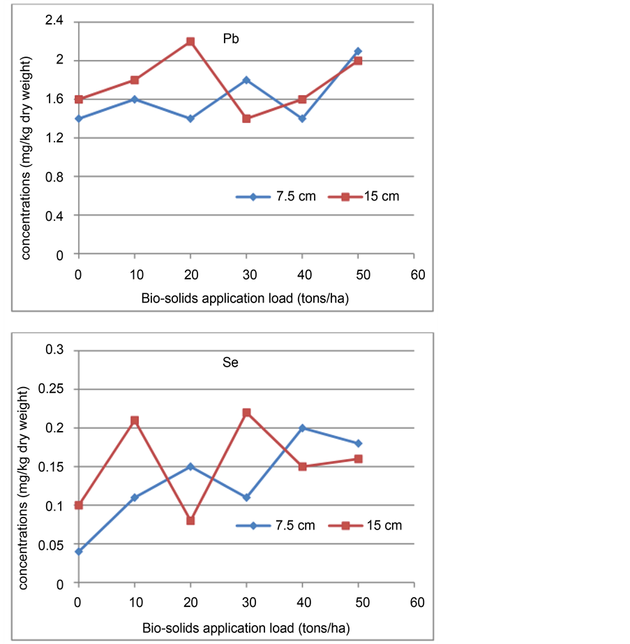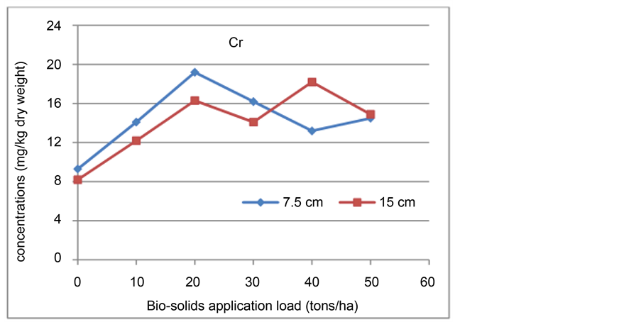 after application at two depths, 7.5 and 15 cm and the plant tissues. The heavy metals concentrations for a composed bio-solid used in the experiment are shown in Table 3.