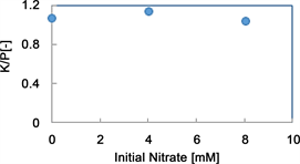 Figure 9. Effects of the initial nitrate concentration the K/P ratio.