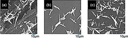 Figure 12. Effects of the sulfate concentration on the crystal on surfaces ((a) 1.02 mM, (b) 2.04 mM, (c) 3.06 mM).