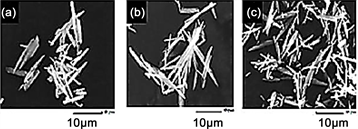 Figure 10. Effects of the nitrate concentration on the crystal on surfaces ((a) 0 mM, (b) 3.68 mM, (c) 7.35 mM).