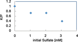 Figure 11. Effects of the initial sulfate concentration the K/P ratio.