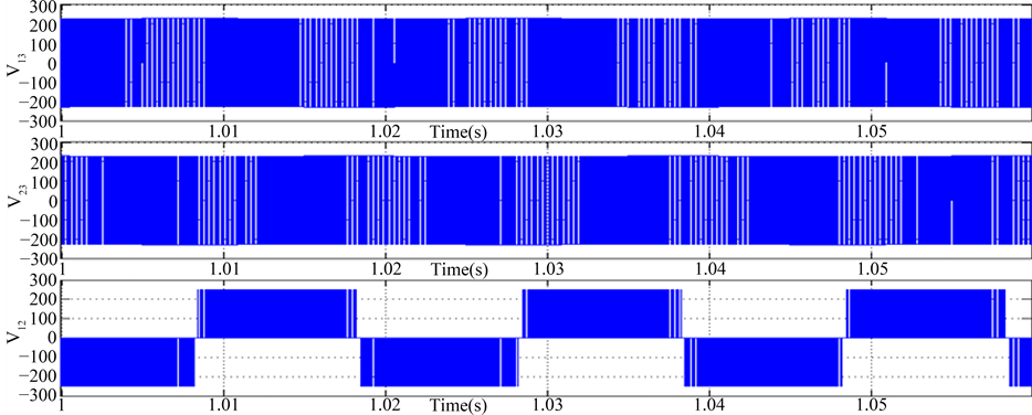 Figure 4. Line voltage waveform of reduced switch three phase Z-source inverter.