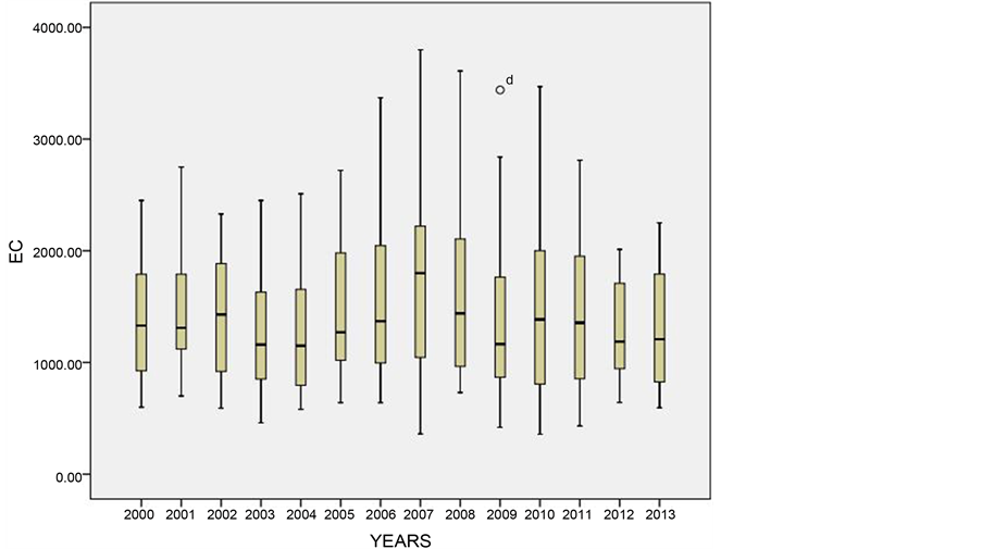 Figure 4. Change graphics of EC values in Büyük Menderes River during 2000-2013.