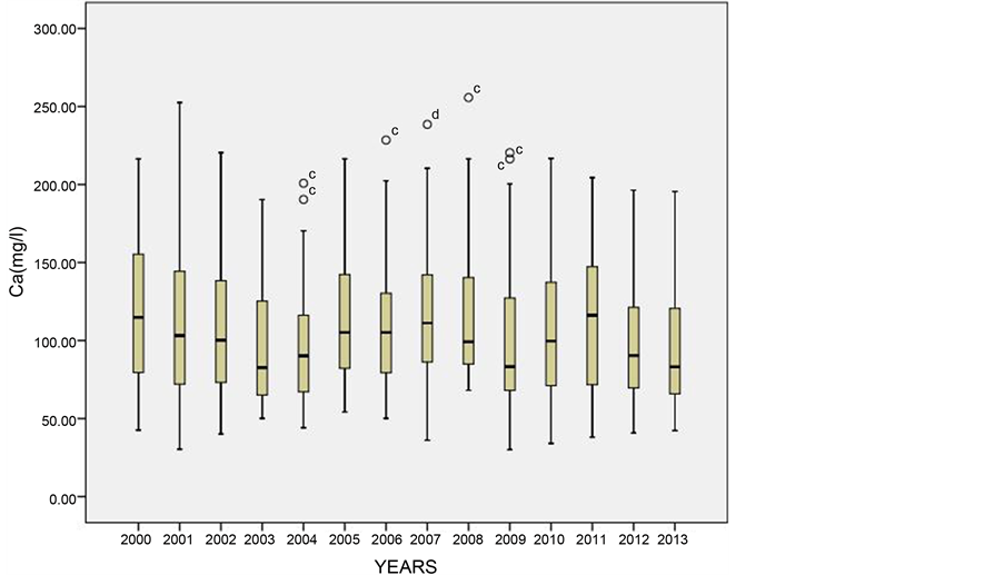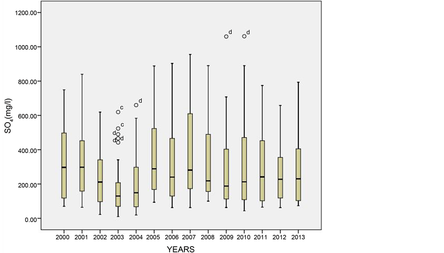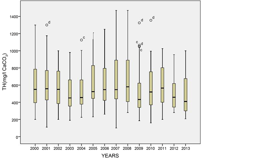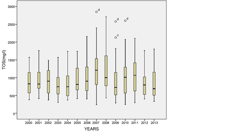 , TDS, TH and SS) between the years 2000 and 2013 are given. The results were given in Tables 2-4.