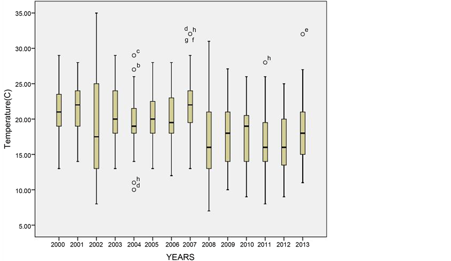Figure 2. Change graphics of ˚C values in Büyük Menderes River during 2000-2013.