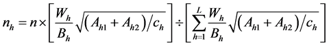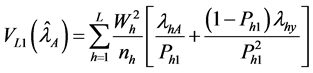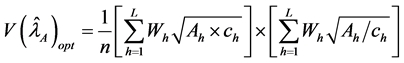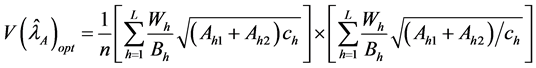 Now, we consider the proportional and optimal allocations of the total sample size n into different strata. The method of proportional allocation is used to define sample sizes in each stratum depending on each stratum size. Since the sample size in each stratum is defined as