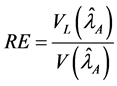 Figure 2. Relative Efficiency (RE) of the proposed model with respect to Lee et al. [4] for indicated values.