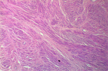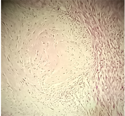 Figure 4. (HE × 25) Histological examination: proliferation of myocytes in tangled beams associated fibroblasts developing collagen (cf Dr Kouamé N’da* Pathology department University.