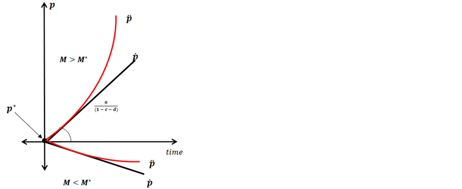 Figure 1. Price dynamics under changes in the quantity of mo- ney, featuring Propositions 1 & 2.