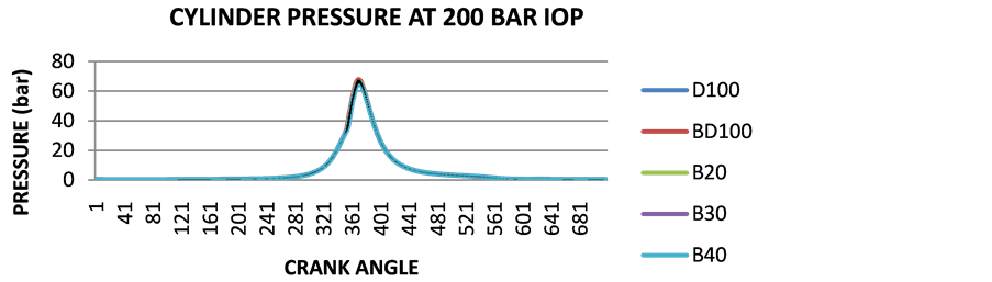 Figure 9. Cylinder pressure with CA at 200 bar IOP.