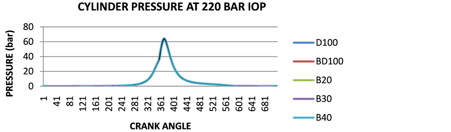 Figure 10. Cylinder pressure with CA at 220 bar IOP.