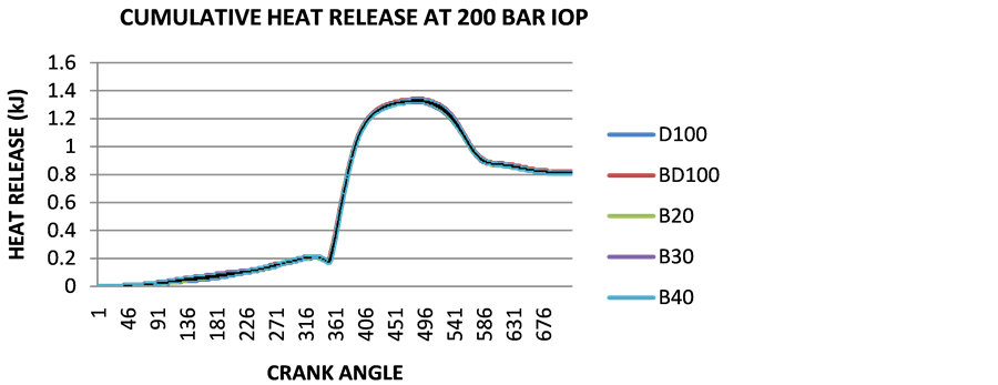 Figure 17. Cumulative heat release at 200 bar IOP.