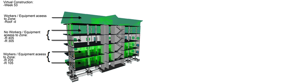 In addition, time information can be integrated into the BIM model, which utilizes a three-dimensional project geometry into an environment where the effect of time schedule over construction can be visualized. A virtual object-oriented 4D model had the potential to support automated constructability assessment and to assist a project team in identifying constructability issues early in the design and construction phases [17] . This improved the identification of possible mistakes or conflicts done unknowingly at an early stage of a construction project, and thus enabled project stakeholders to optimize the construction schedule as much as possible [18] .
