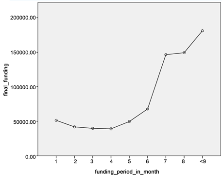Since the predecessors reached different conclusions in analyzing the impact of funding period on final funding, it can be judged based on the descriptive statistics of funding period and final funding. Figure 2 is the relationship between