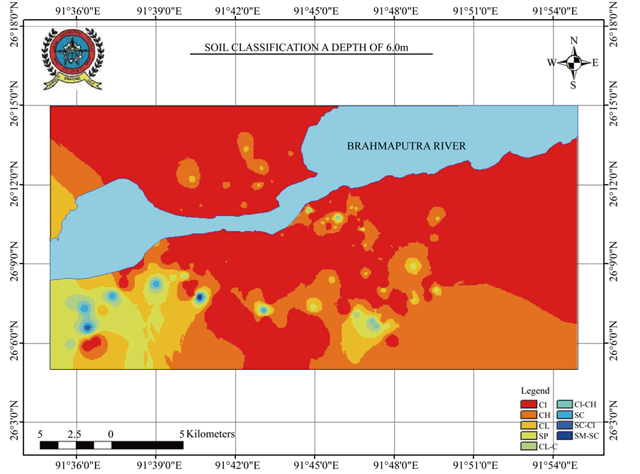 Figure 2. Soil classification map at a depth of 6m in Guwahati city.