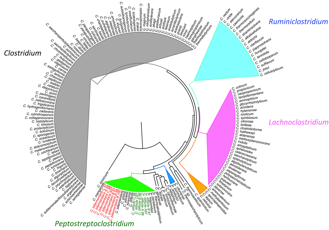Figure S8. Distance tree showing that Clostridia genus clustered in the Peptostreptoclostridium in two groups related to C. bifermentans and difficile.