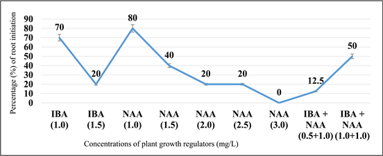 Figure 6. Effects of IBA, and NAA on regeneration of root from seed of native orange.