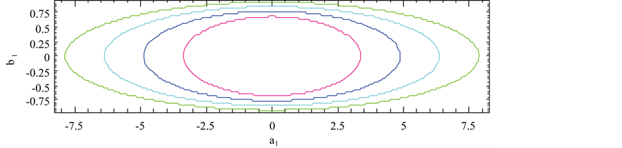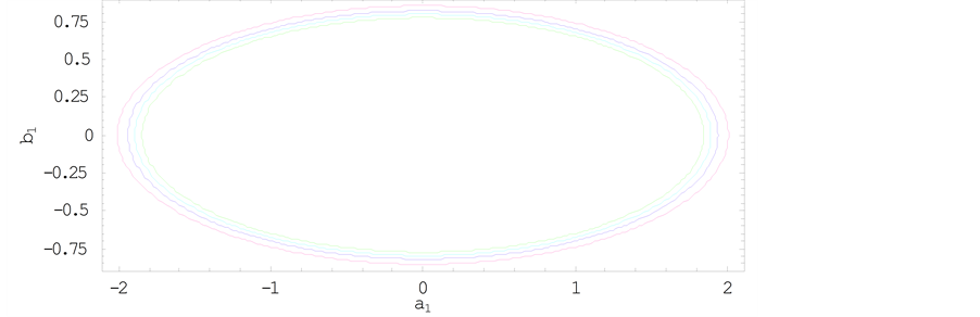 Figure 5. Effect of radiation of the bigger primary on the long periodic orbits for μ = 0.03; q2 = 0.8; A1 = 0.01; A2 = 0.02; e = 0.35 and a = 1.2.